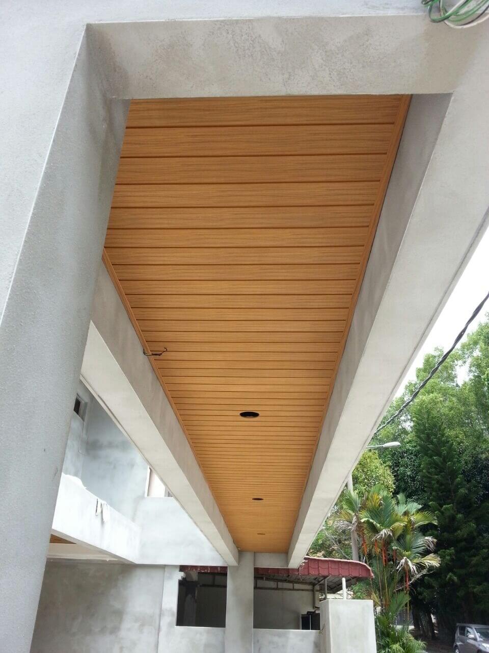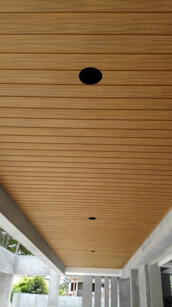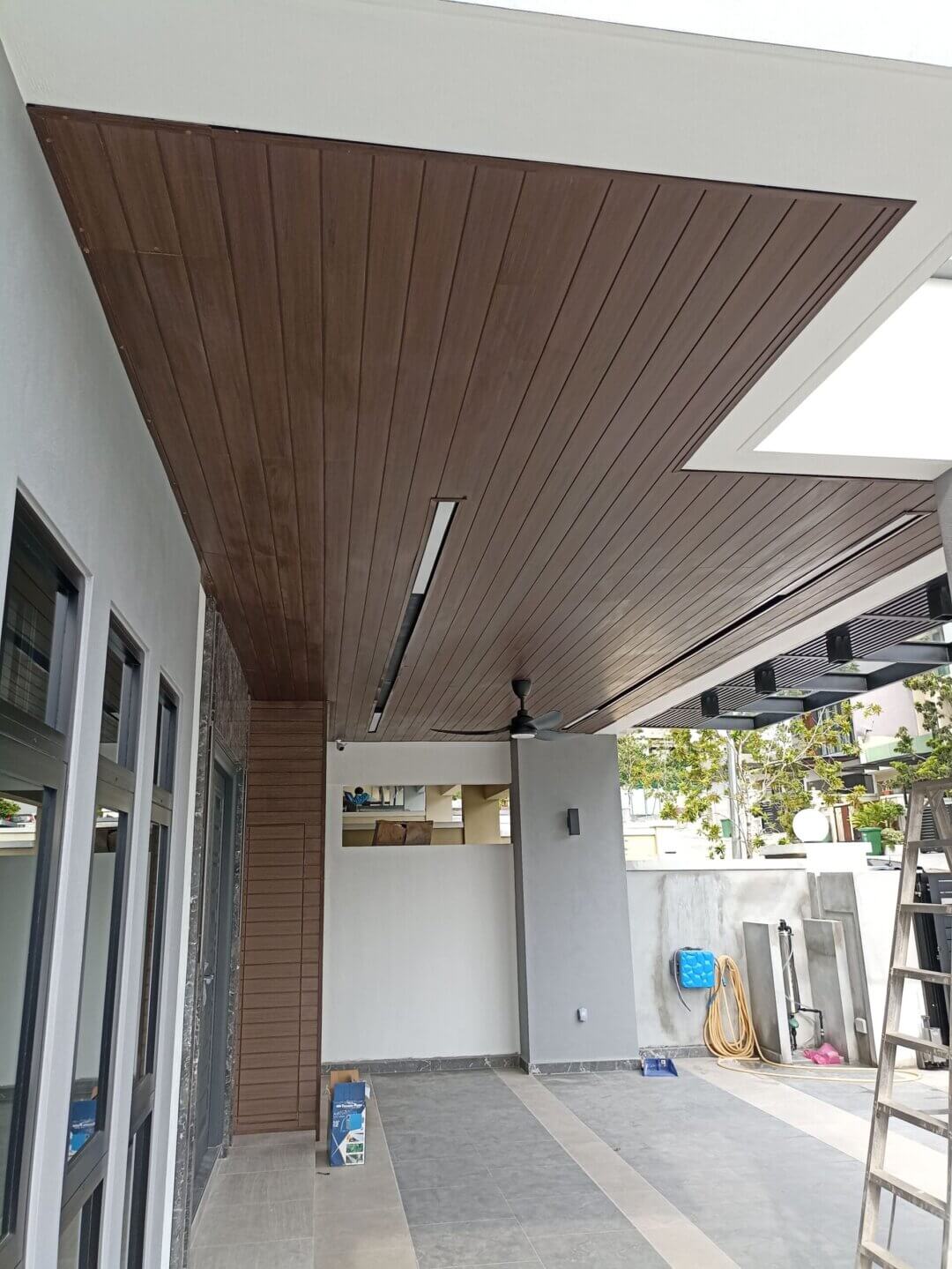 Panels with linear designs made of engineered composites with a natural wood finish. This gives them the appearance and texture of natural wood while also being water resistant and termite and mould repellent
